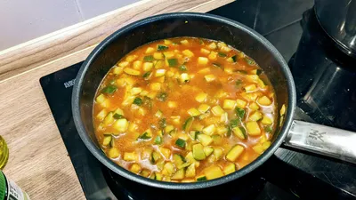 1.Die Zucchini in Würfelchen schneiden, und in einer Pfanne mit Olivenöl schonend anbraten. 2.Wenn die Würfel weichwerden, Zutaten A hinzugeben und kurz aufkochen. Wenn die Mischung kocht, die von der Herdplatte nehmen und das Mehl vorsichtig draufstreuen und unterrühren. 3.Die Kräuter B fein haken. Dabei vorher die Stängel entfernen. 4.Knoblauch in einer großen Pfanne in Öl anbraten. Idealerweise wird das Öl der Sardinen genommen. Wenn diese jedoch nur in Saft eingelegt waren, nimmt man stattdessen ein anderes Öl.