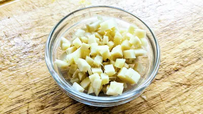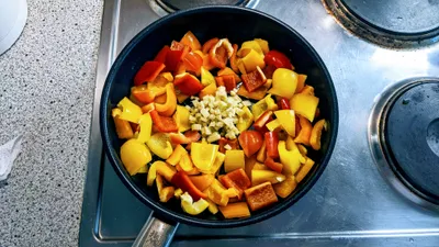 2.Die Paprika in Würfel schneiden, und zusammen mit dem Ingwer in einer Pfanne anbraten.